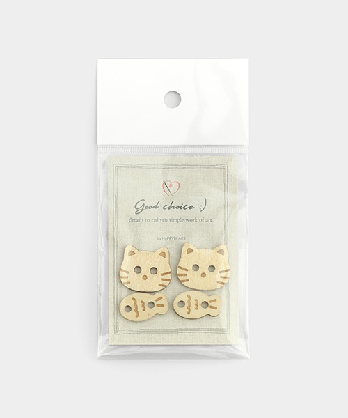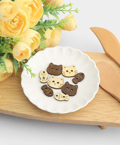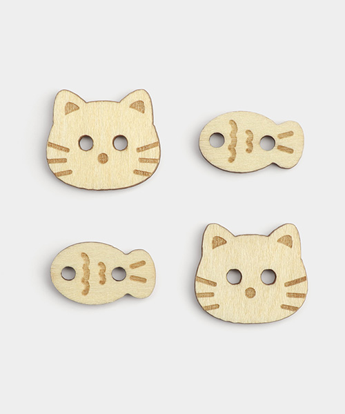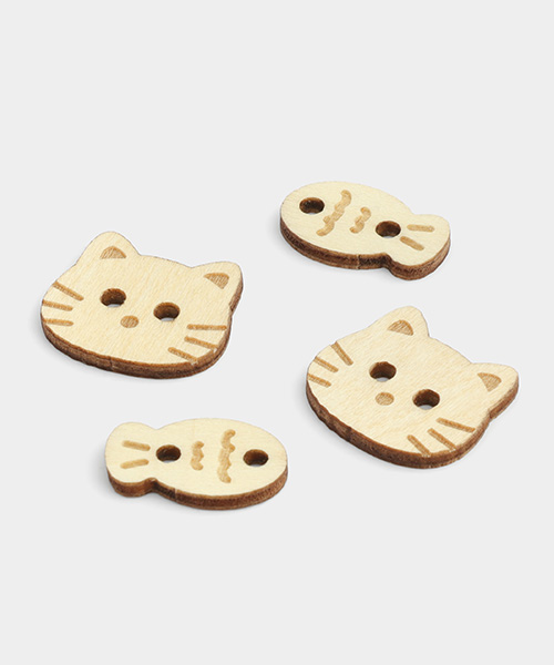 Cat & Fish Wooden Button Set