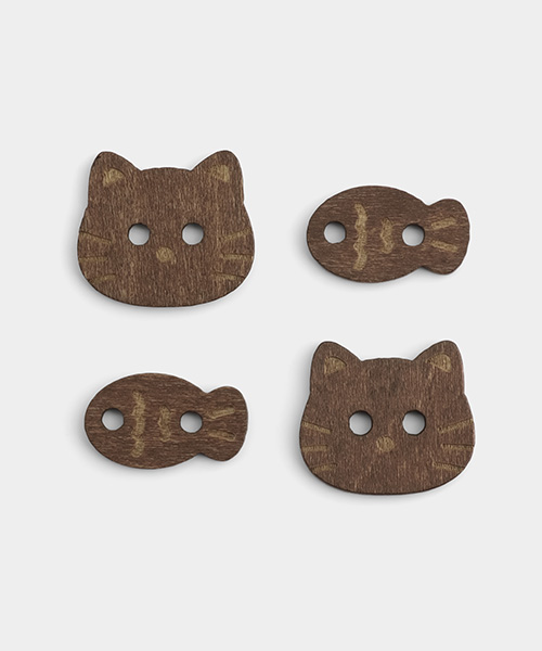 Cat & Fish Wooden Button Set